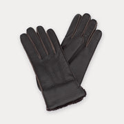 Klassischer Handschuh aus feinem Hirschleder mit Lammfellstulpe und warmer Fütterung aus reinem Kaschmir.